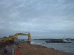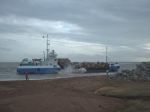 Bolstering the defences by the Golf Course at Felixstowe Ferry, the ship was shallow drafted and was able to come in very close to the beach