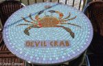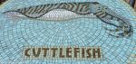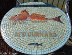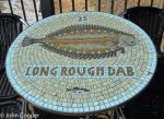 Dining tables on Southwold Pier all in ceramic mosaic