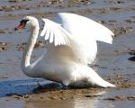 This Swan in the River Stour, note the mud it is kicking up