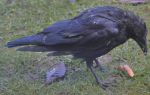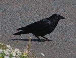 One persistent Crow after the dogs dinner leftovers yesterday morning in the rain, must have been soggy though as the feeding table filled up with water