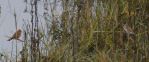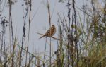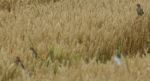 On Friday I saw these birds on sheafs of corn, I knew Corn Buntings could be seen in the area and I have just had confirmation from the RSPB guys that they are Corn Buntings, these are quite rare in the UK these days and are on the Red Status of wildlife protection, I haven't seen one of these in over 60 years, we think there are two young also, very distant shots and well cropped