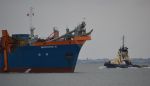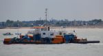 WATER JET DREDGING PONTOON called Jetsed leaving the Stour estuary yesterday with a Danish registered tug