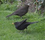 Blackbirds Scrapping inc our resident leucistic Blackbird